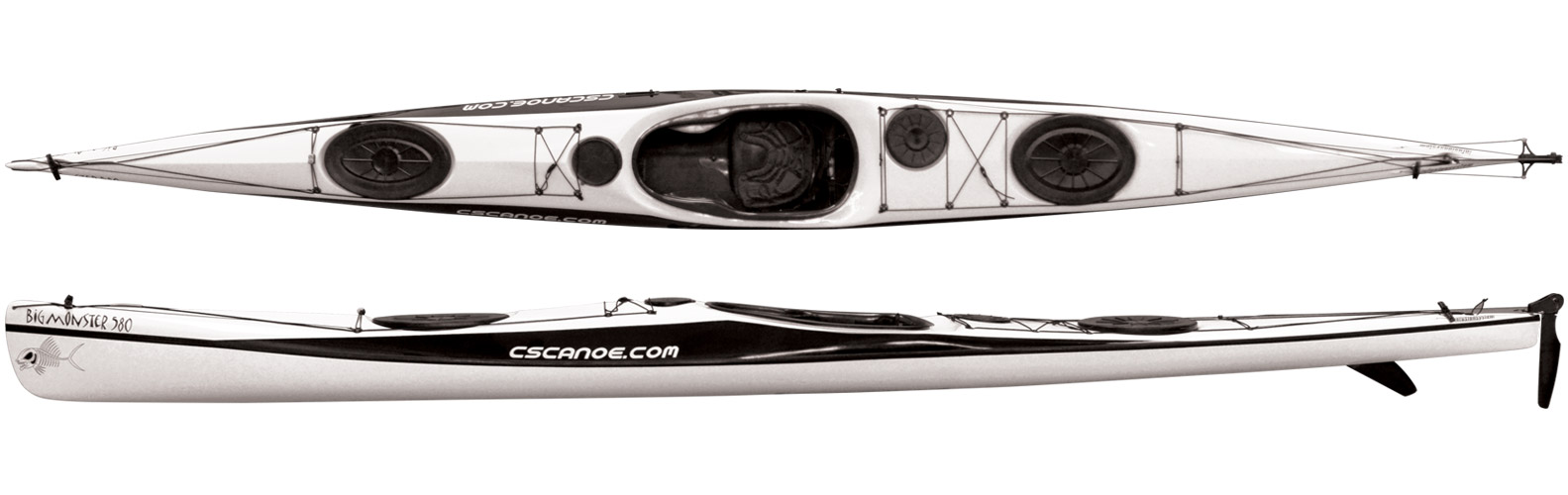 Big Monster 580: evoluzione del SK Monster 580, con maggiore volume ed abitabilità del pozzetto, ora particolarmente adatto a persone di alta statura e con fisico “importante”. Big Monster 580 è seakayak da viaggio veloce, con elevate caratteristiche di facilità di conduzione, stabilità, scorrevolezza e capacità di carico. La lunghezza di 580 cm. consente una migliore stabilità longitudinale, specialmente tra le onde ravvicinate, riducendo il beccheggio a tutto vantaggio della fluidità nell’avanzamento del kayak. Big Monster 580 si pone al top dei seakayak e nella stessa categoria dei surfski meno “estremi”, ma, rispetto a questi, consente un uso invernale o comunque in condizioni meteo poco favorevoli. I pesi-canoista compresi tra i 73 e 125 kg. sono quelli ideali per questo kayak. Nuovo è il pozzetto, con profilo posteriore ribassato, solo a richiesta la versione alta del bordo pozzetto con, posteriormente, l’alloggiamento per fermare la pagaia nell’uso del paddle float. Da 85 cm la lunghezza esterna del pozzetto ed è molto comodo per accedere al kayak in ogni situazione. Per la migliore ergonomia nella pagaiata, la coperta è molto rastremata e priva di sporgenze nell’area di lavoro della pagaia. In coperta sono di serie le deck-line, le maniglie di trasporto, il sedile regolabile, il gavone di poppa, con tappo di carico ovale da 42×30 cm ed il gavone di prua, con tappo di carico ovale da 44×26 cm. Il kayak è predisposto alla timoneria, monta di serie la pedaliera a pedali laterali ed a richiesta è possibile dotarlo di pedaliera telescopica, di timone, di Day Hatch posteriore e/o del Pocket Hatch anteriore, deriva retrattile(Skeg), bussola e pompa di sentina. La preparazione tecnica e fisica personale del canoista ed il rispetto delle più elementari norme di sicurezza in navigazione, sono i suoi unici limiti da osservare, per godere appieno delle sue fantastiche prestazioni. Buon viaggio.