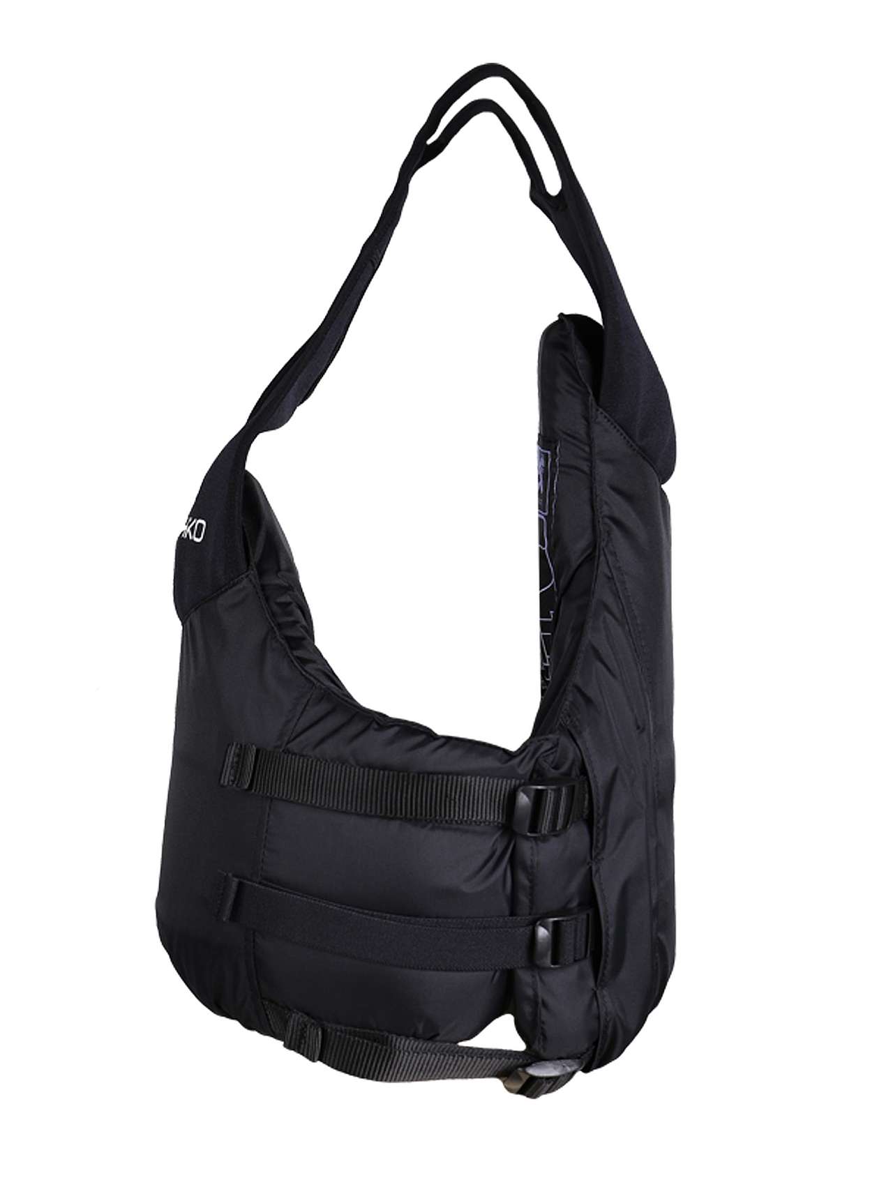 Saluki Hiko, aiuto al galleggiamento approvato e certificato dall’International Canoe Federation (ICF) ed ISO 12402-5, adatto alle competizioni di slalom e discesa. I pannelli galleggianti di foam sono flessibili, conformati e molto confortevoli. Il giubbotto è regolabile usando tre cinturini che corrono intorno al busto.- SALUKI si adatta perfettamente senza limitare movimento.