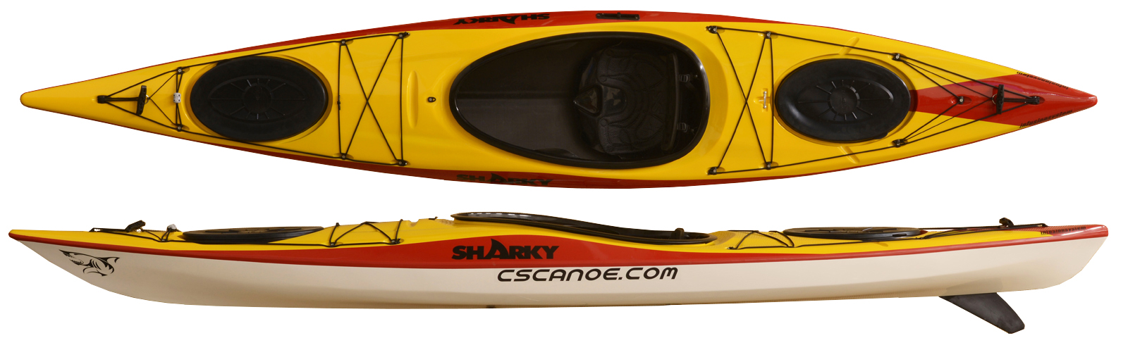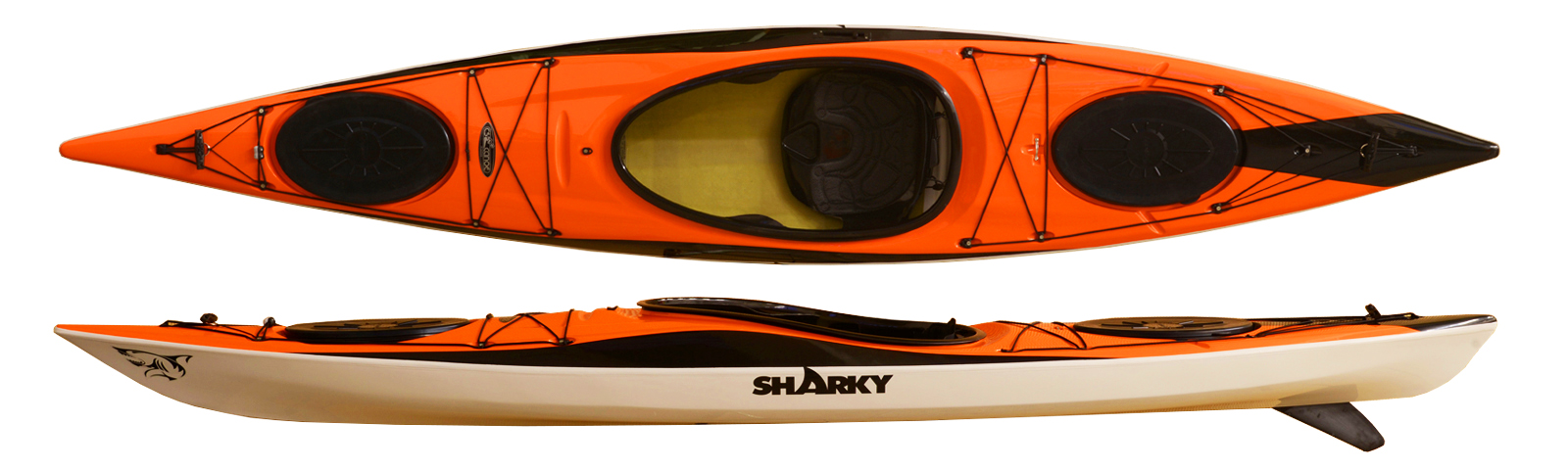 Sharky: kayak mare di piccole dimensioni, molto stabile, facile da usare e trasportare sull’auto. Ha un’ampia abitabilità interna, adatta anche a persone alte di statura. E’ un kayak ideale nelle escursioni brevi e per pagaiare tranquillamente sul mare e su laghi e fiumi calmi. Dotato di serie di due gavoni stagni con tappi di carico ovali e deriva retrattile. Date le sue contenute dimensioni, si raccomanda un uso prudente, in base anche alle condizioni meteo-marine.