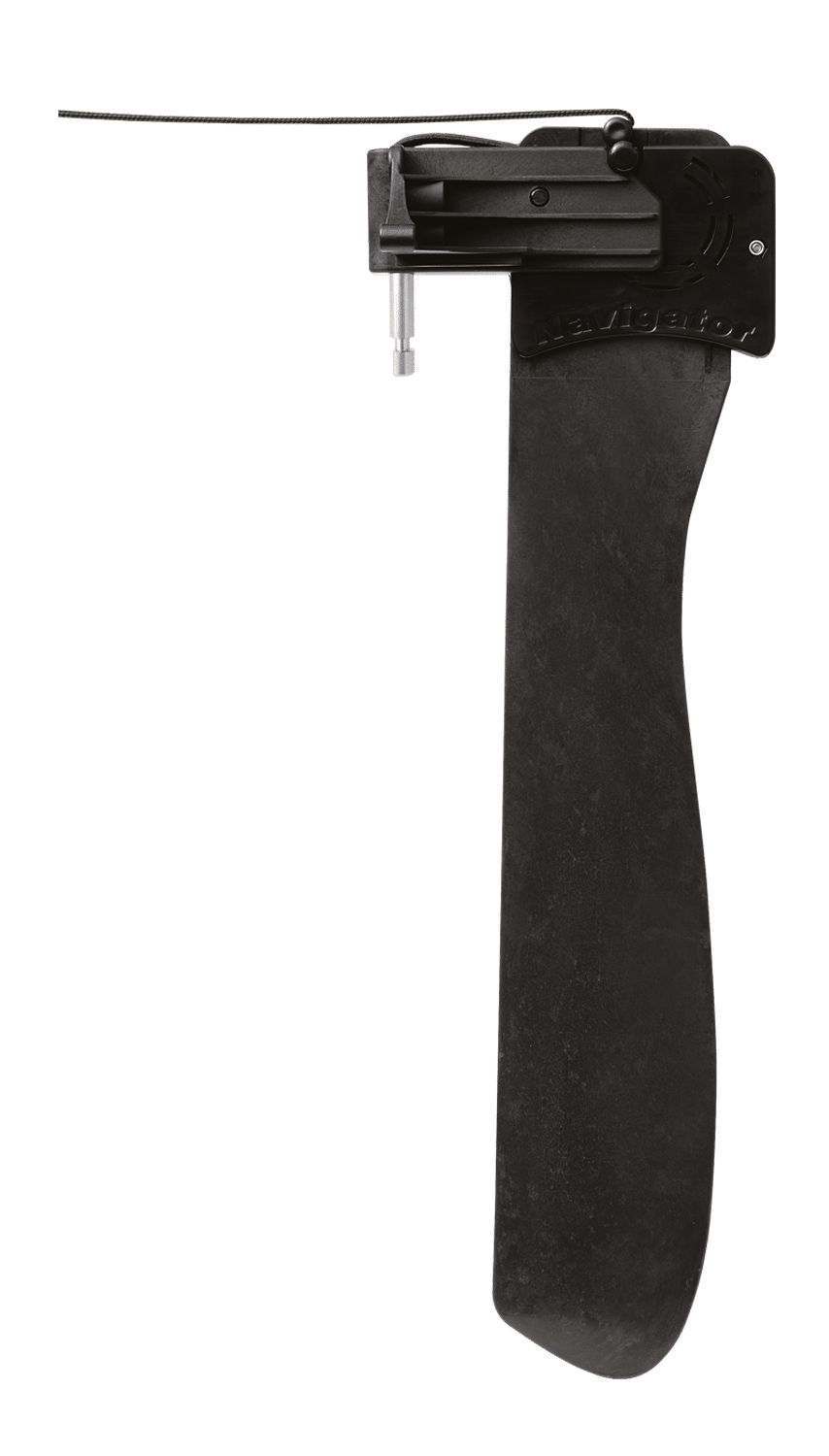 Timone Navigator KS timone in nylon rinforzato, prodotto dalla KS, con completo ribaltamento in coperta della lama, per il suo posizionamento a “riposo”. Comando della rotazione lama, tramite singolo cavo e mantenimento della posizione di lavoro, tramite molla precaricata.